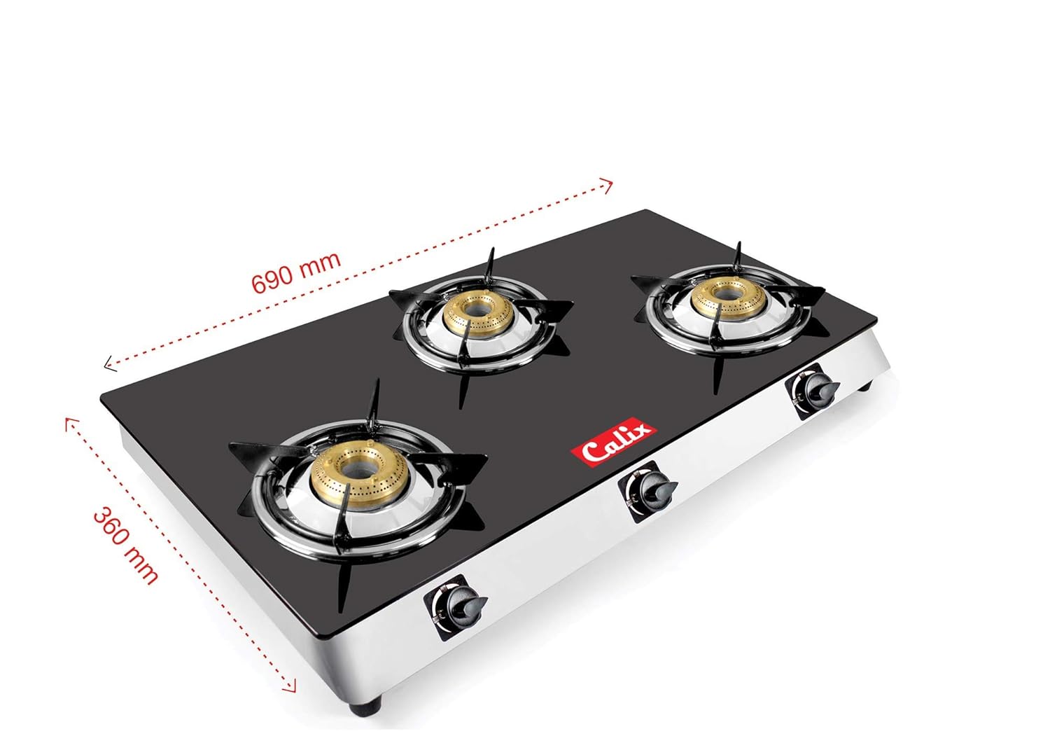 Buy Calix Manual Isi Approved Stainless Steel Body 3 Burner Glass Gas Stove Black Online At Low Prices In India Amazon In