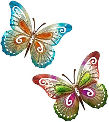 Osw Butterfly Outdoor Garden لتزيين الجدار أو غرفة المعيشة في الداخل غرفة النوم الحمام مجموعة معدنية كبيرة ملونة من 2 فراشات Amazon Ae