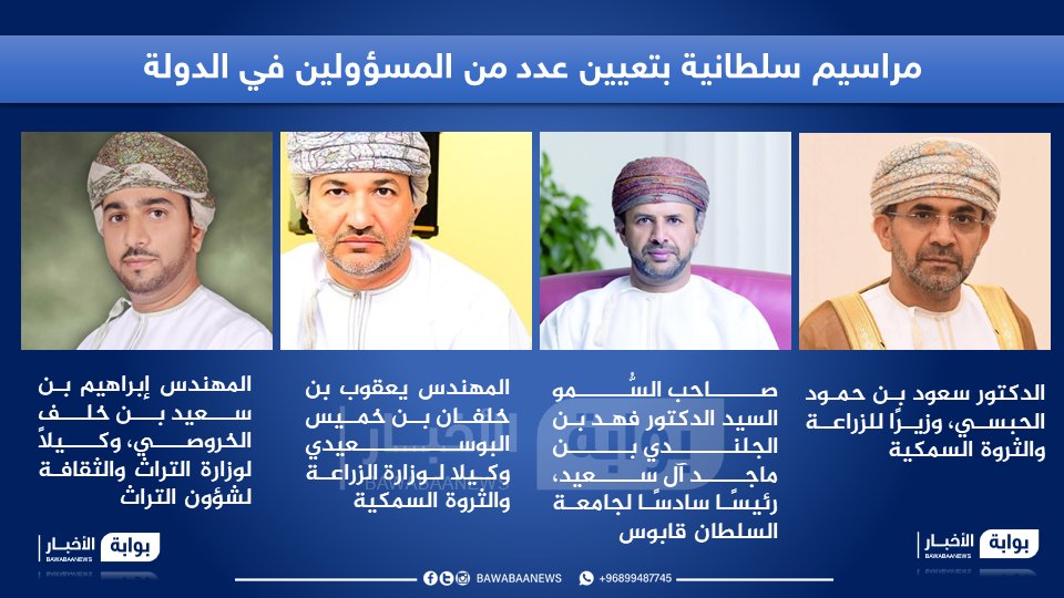 رصد أثيرأصدر حضرة صاحب الجلالة السلطان هيثم بن طارق بن تيمور المعظ م حفظه الله ورعاه اليوم 28 مرسوم ا سلطان. أصدر حضرة صاحب الجلالة السلطان هيثم بن طارق المعظم ـ حفظه الله ورعاه ـ أمس سبعة مراسيم سلطانية سامية فيما يلي نصوصها. أصدر حضرة صاحب الجلالة السلطان هيثم بن طارق المعظم حفظه الله ورعاه اليوم 7 مراسيم سلطانية سامية وقد جاء المرسوم الأول 75 2020 في شأن الجهاز الإداري للدولة ونص في مادته الثانية بإلغاء المرسومين.