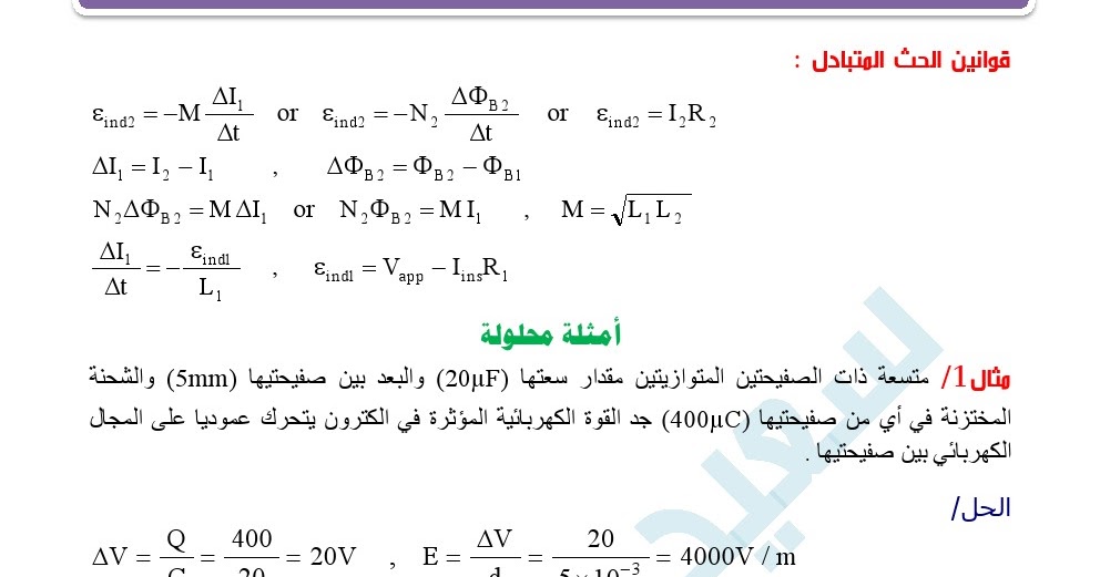 حل اسئلة و مسائل الفيزياء الفصل الثاني للصف السادس العلمي الاحيائي 2016 2017