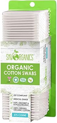 مسحات قطن عضوي من سكاي أورجانيكس 375 قطعة قطن طبيعي مسحات قطن لم يتم إساءة معاملة أي حيوان أثناء إنتاجها مسحات قطنية طبيعية بالكامل خالية من الكلور قطن لا تسبب الحساسية عبوة